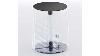 Der transparente Sitzhocker hat die Besonderheit, dass er die Sonnenstrahlen durchlässt, wodurch er sich auch bei direkter Sonneneinstrahlung kühl anfühlt.